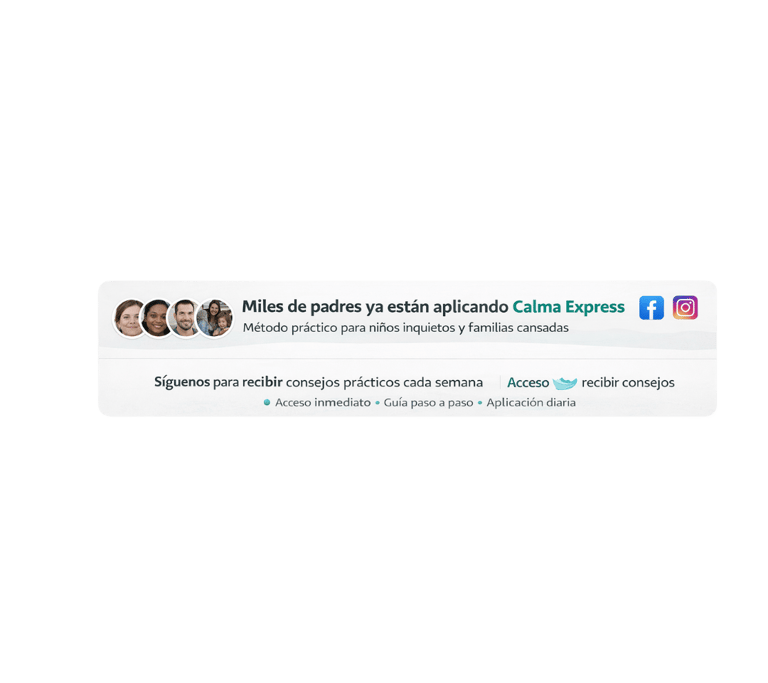 Con Calma Express aprenderás a activar un reinicio emocional que ayuda a tu hijo a bajar la intensidad y volver a la calma — facilitando la cooperación.